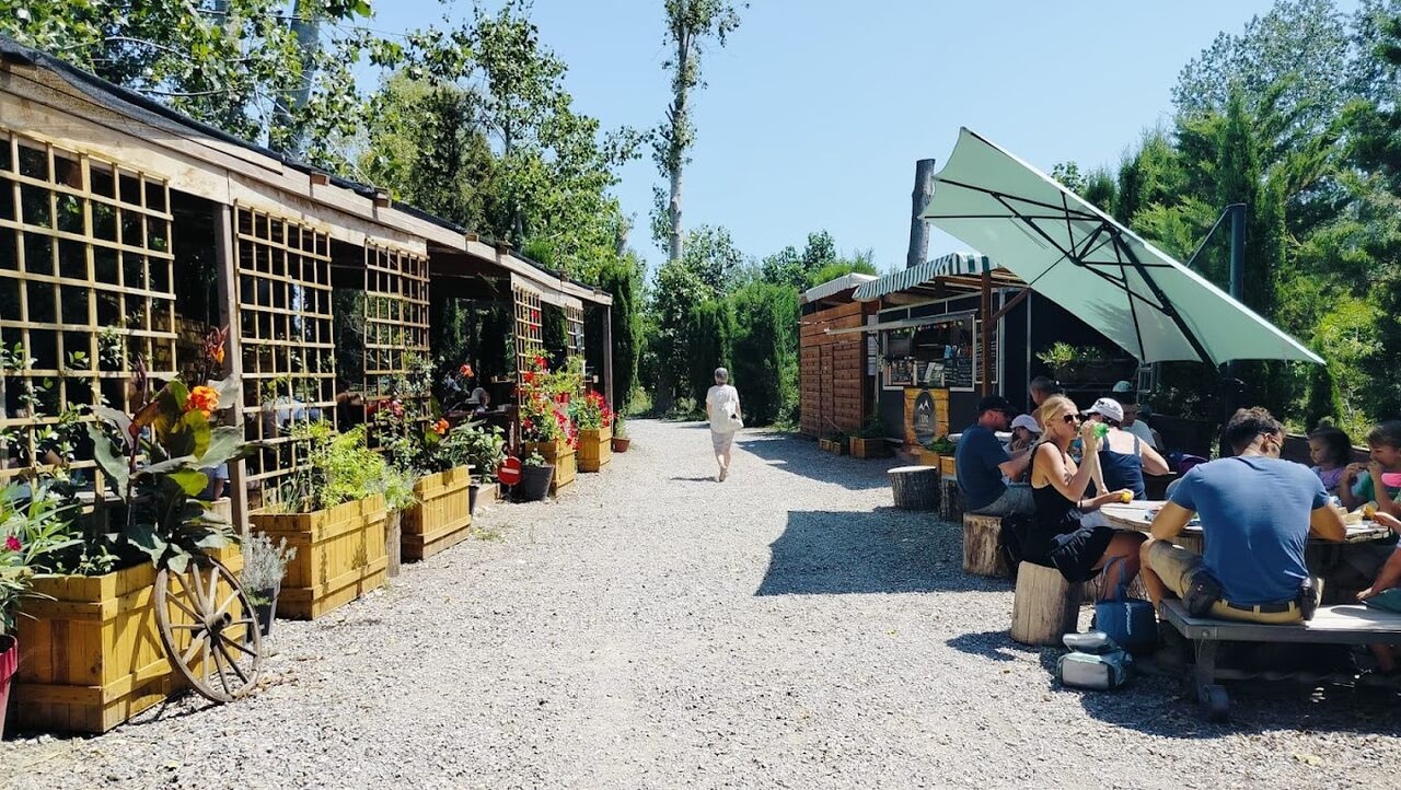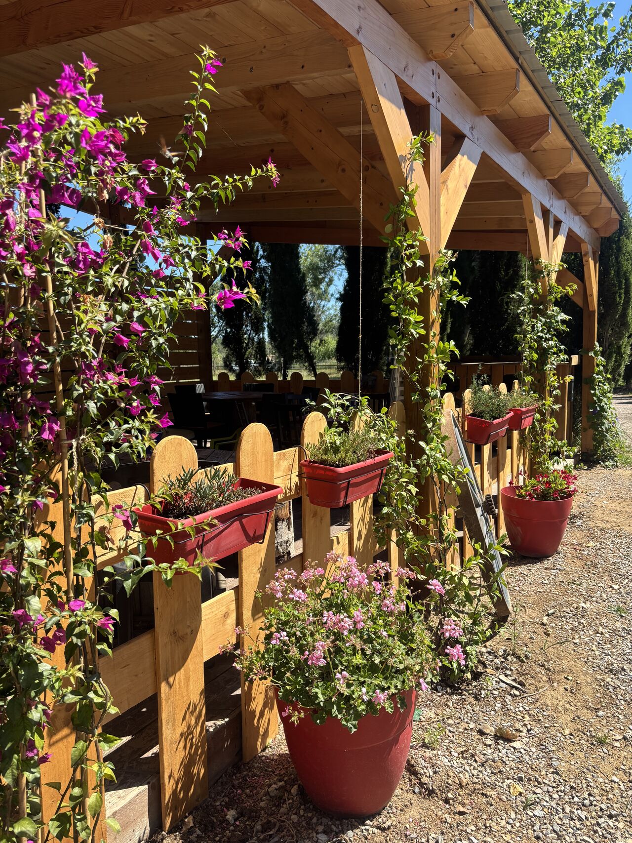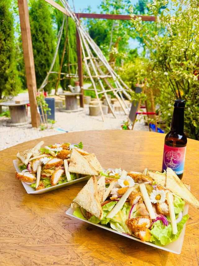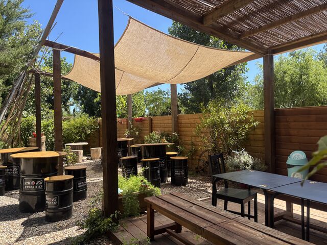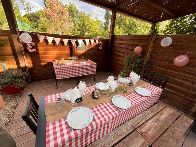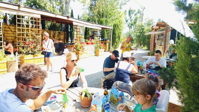Terrasse ombragée et pensée pour les enfants (jeux, tables enfants, chaises hautes), venez profiter de notre terrasse lors de votre visite dans le parc ou arrêtez vous prendre un bol d’air frais, de nature et de calme le temps d’une pause repas si vous venez de l’extérieur.